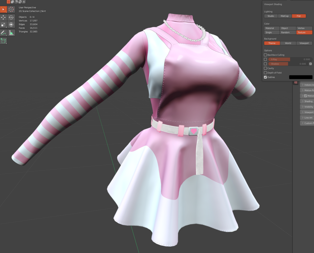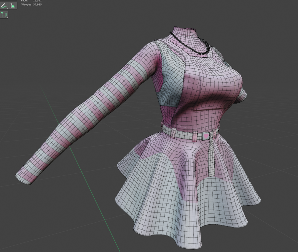 Material slots: 4; Metal, Skirt, Long sleeve, Bra
