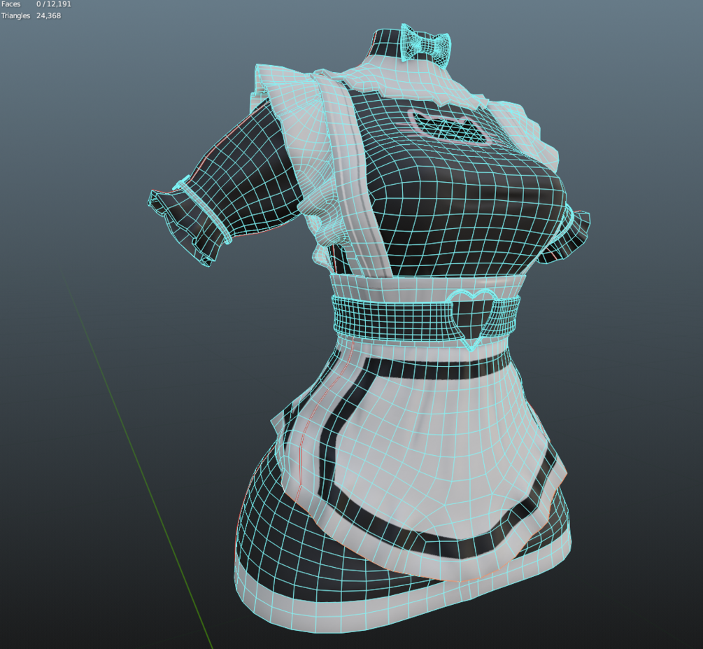 Maid dress for pandabase, rigged and textured, baked from HP mesh